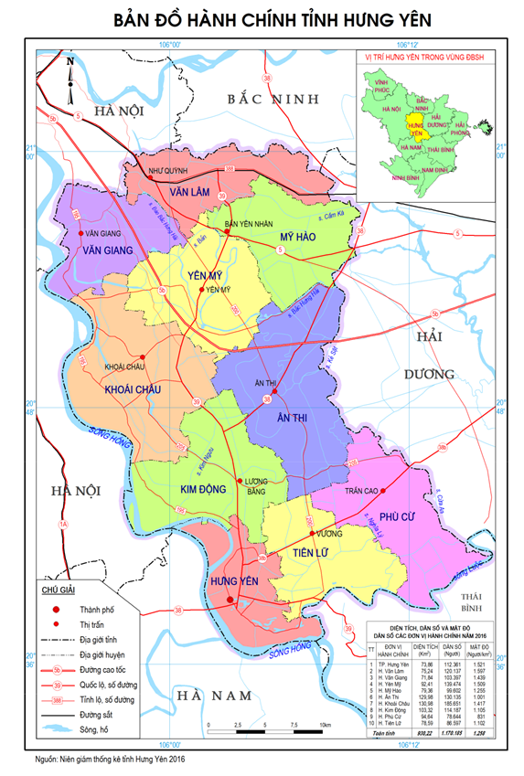 Bảng 2. Các đơn vị hành chính của tỉnh Hưng Yên (năm 2019)